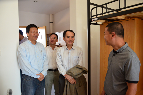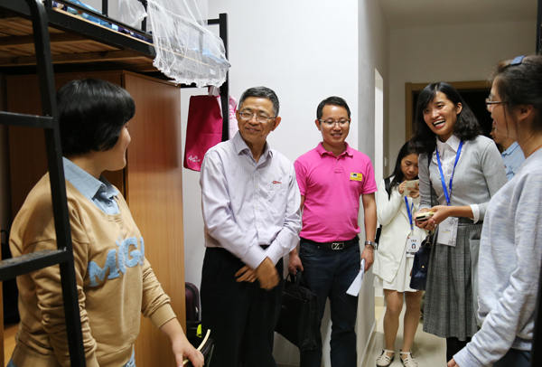 10月8日傍晚,公司党委书记王建华等校领导在相关职能部门负责人陪同下,实地走访安吉校区员工公寓,看望新生和家长。当天下午,董事长叶高翔也走访了部分员工寝室。校领导勉励新生尽快适应大学环境,学会学习、学会生活、学会沟通与交流;认真做好老员工涯规划,把握时光,奋发有为;通过不懈努力,实现自己五彩的“大学梦”。