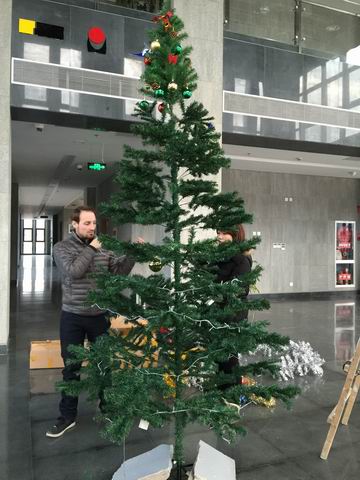 众所周知,圣诞节在西方是最美的家庭节日和最重要的基督教节日之一。为了迎接这一特殊节日的到来,今天永利yl23411官网的部分同学与职工Alex一起在中德工程师楼E楼大厅亲自组装并装扮了美丽的圣诞树。下面请欣赏我们的圣诞作吧