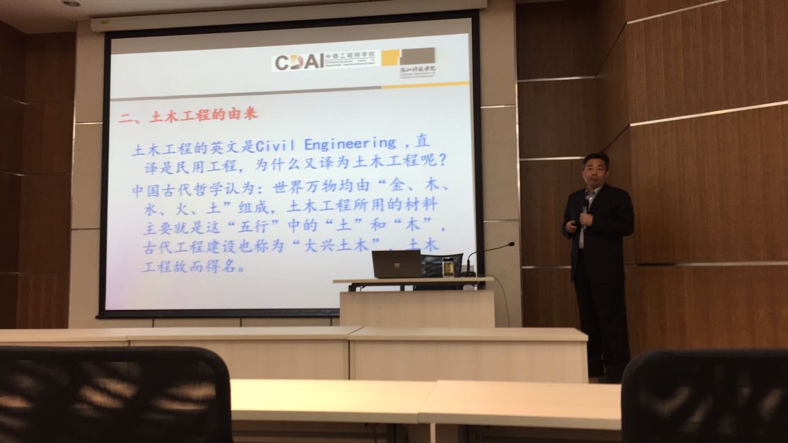 整场讲座分为两大部分,第一,土木工程的历史,目前的状况以及将来发展的方向。第二,夏经理为我们生动地展示了一个 “非典型”项目,以此来告诉我们土木工程应用的范围之广。专注地听完整场讲座后,许多困扰我的问题都有了思路;经理的话,如同黑夜中的一缕阳光,为我今后就业发展指明了方向。