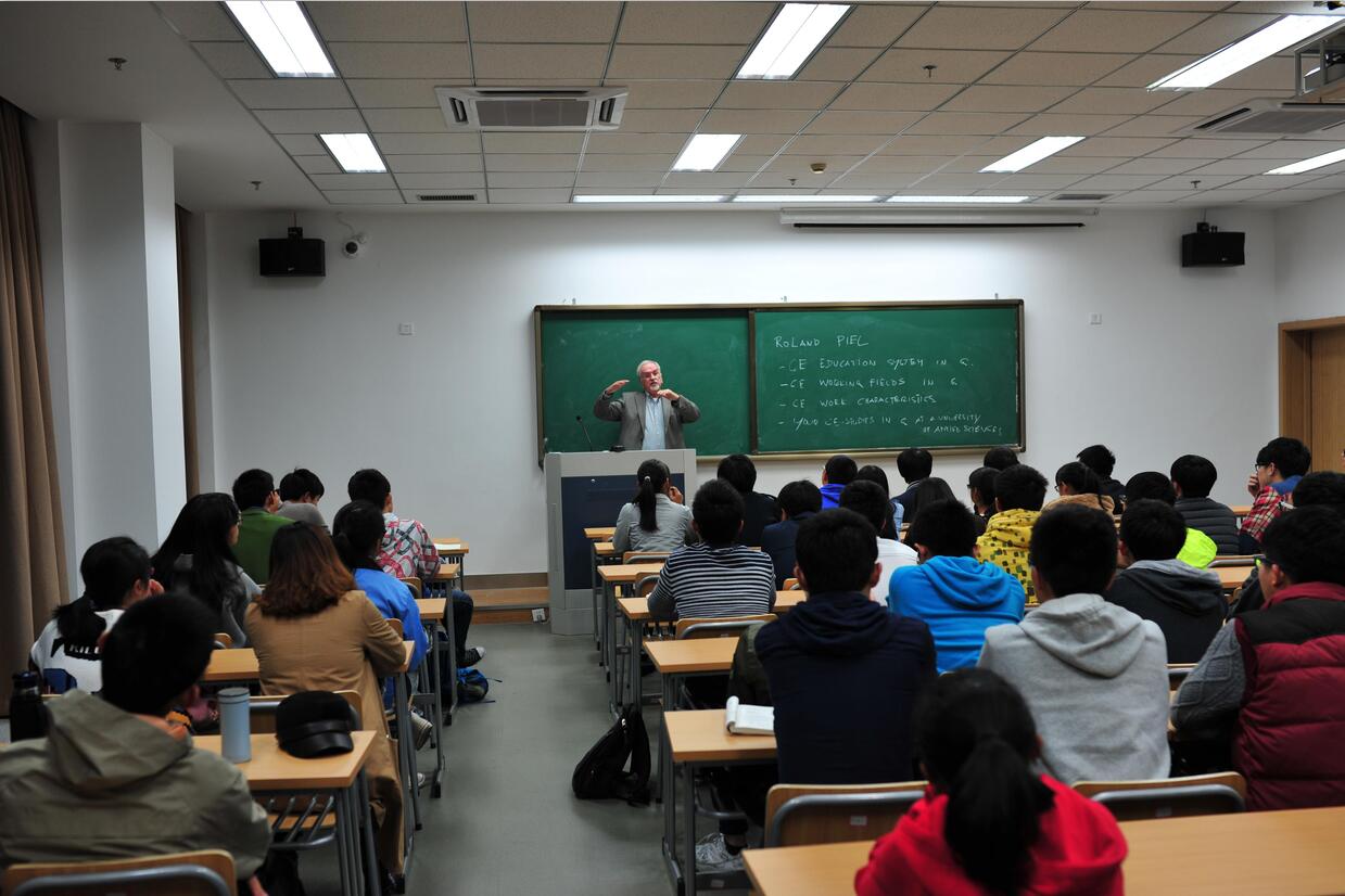2015年11月4日星期三18:30,我们和德国教授Roland Piel如约在中德楼D311见面。