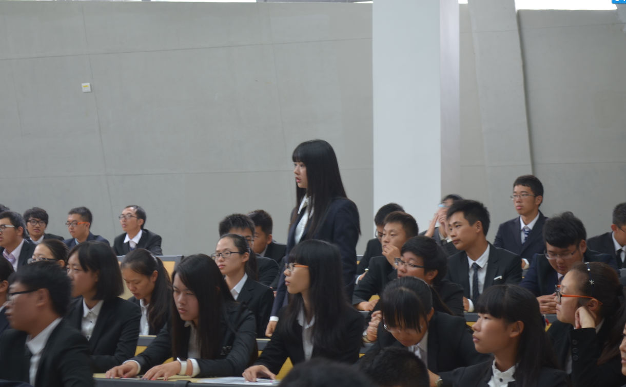 第二部分为新生提问环节,新生对Zeman女士进行了踊跃提问,Zeman女士对每一个问题都给出了认真细致的回答,这使得新生们有了更清晰的努力方向,对职工活的憧憬使他们产生了浓浓的斗志。提问环节之后,Zeman女士为各位新生简要讲解了国际礼仪的基本知识,如参加正式会议时应保持手机静音,做到基本的礼貌。