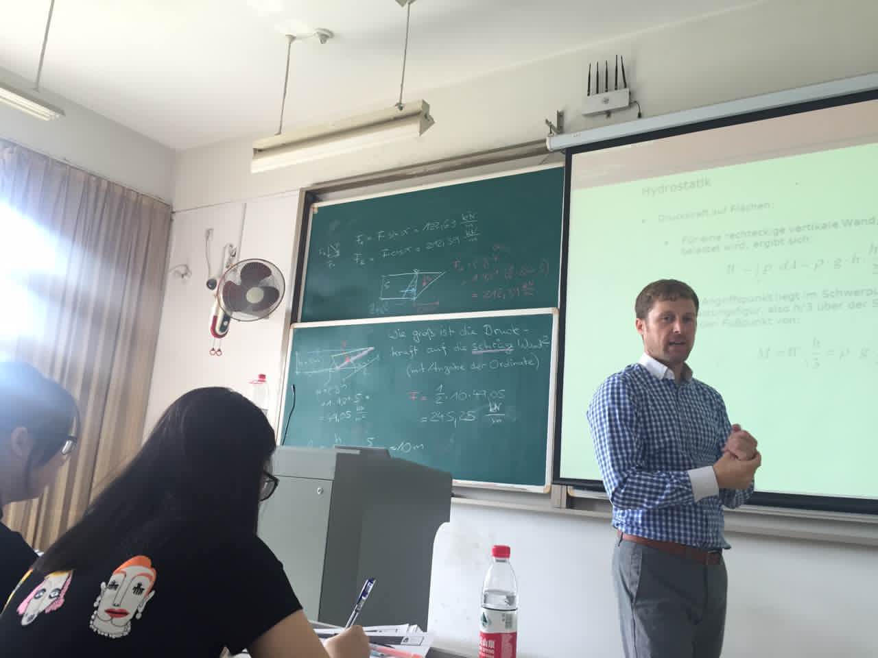 2016年9月19日起,来自德国吕贝克应用科技大学的玛利欧·奥特(Mario Oertel)教授前来公司为14届土木工程的同学开展为期一周的流体力学集中授课。