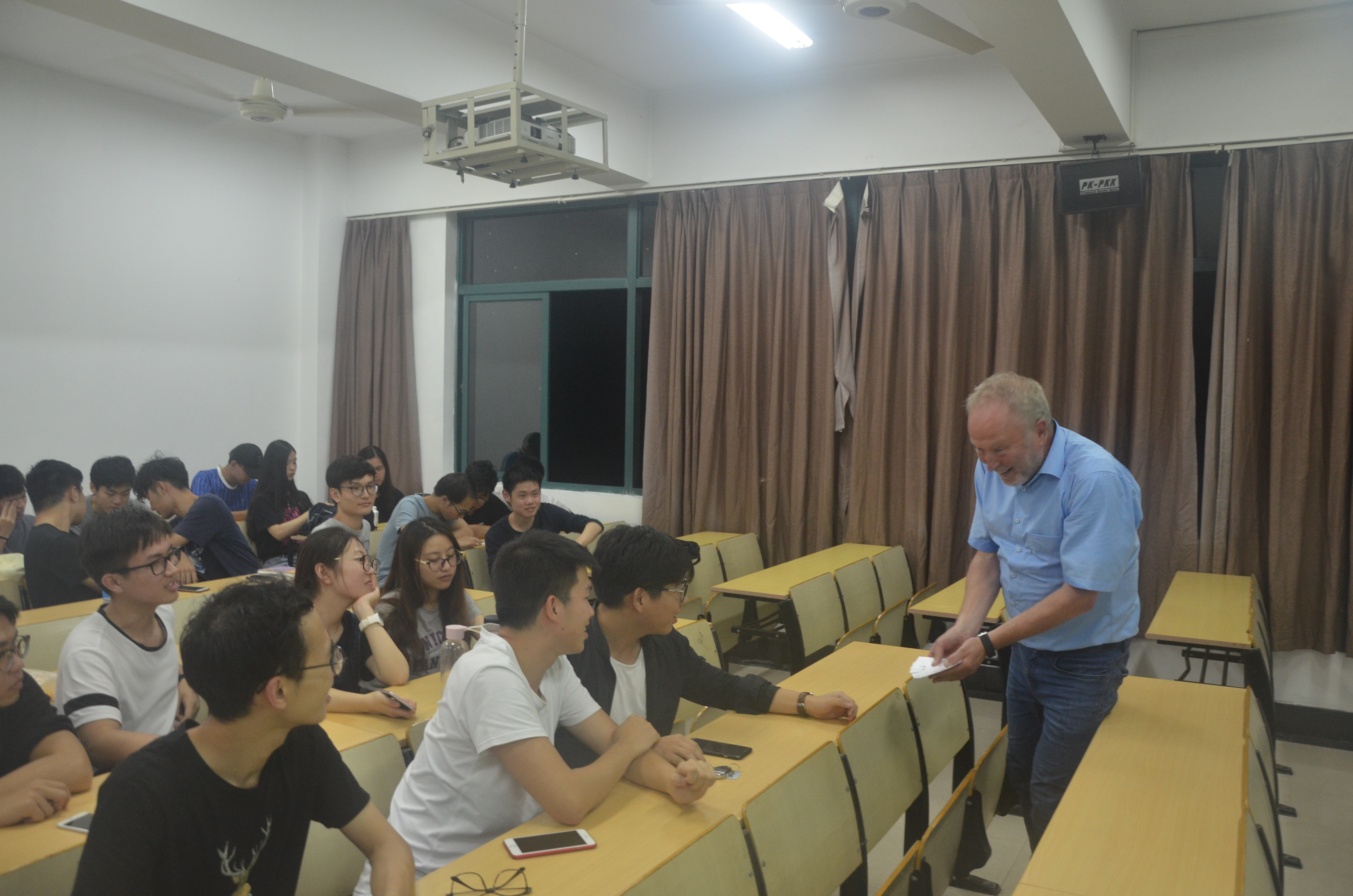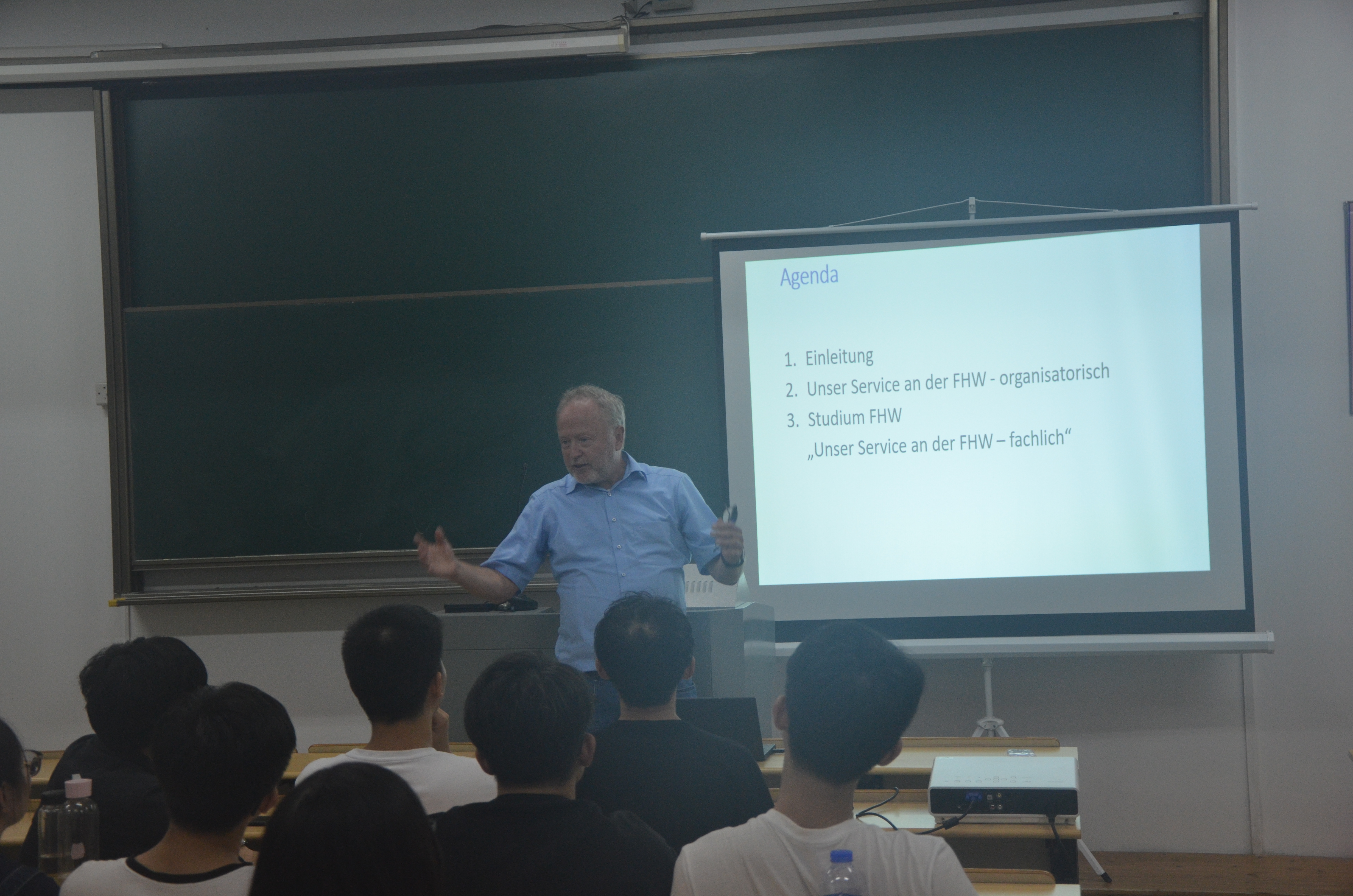 2017年9月28日18时30分于浙江科技公司小和山小区B4楼421教室,德国西海岸应用科技大学工程公司经理、德方专业负责人Detlef Jensen教授向14和15级电气专业员工进行了 关于“西海岸应用科技大学对公司交换生生活以及学习方面服务”的讲座。