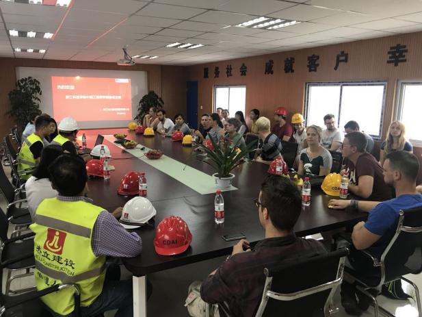 公司专门安排了土木工程专业教师带领德国夏令营团实地参观工程项目,其中包括杭州至临安城际铁路工程JLHL-5标段南湖新城站项目、安吉的碧桂园翰林府项目及春天尚居工程,部分CDAI员工也跟随其中。参观过程中,德国员工与教授对于在中国工地上看到的不同的施工工艺兴致浓厚,两国员工就地连墙的施工工艺、中德两国在钢筋混凝土框架结构中墙体材料的选用及保温隔热性能等方面展开了深入的探讨,气氛融洽。德国夏令营团还参观了杭州与安吉校区,展示了教室、食堂、实验室与咖啡吧等场所,对于国内员工的生活与学习环境有了基本了解,部分员工表示有兴趣来公司参加交换生项目的学习。