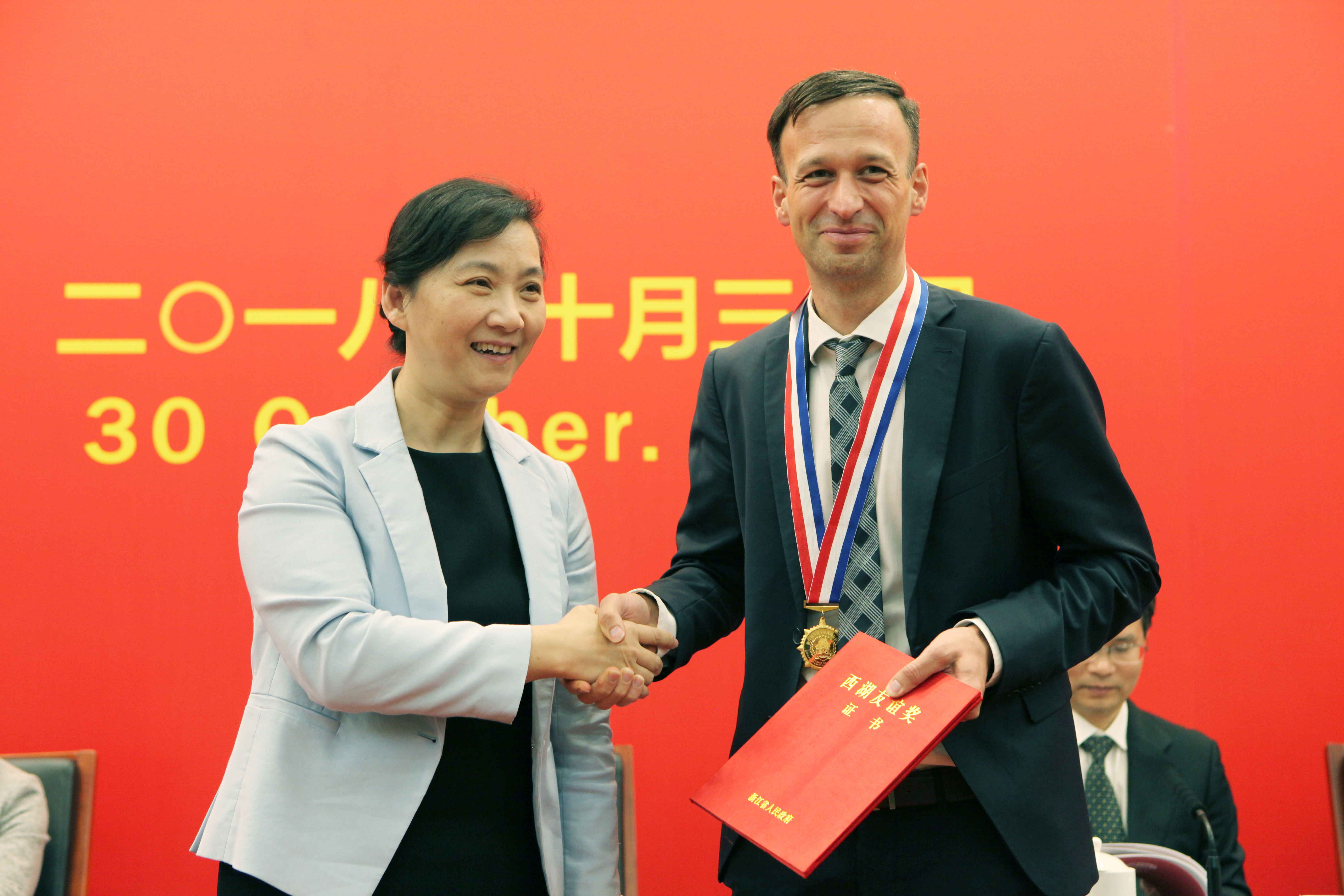 10月30日下午,2018年浙江省政府“西湖友谊奖”颁奖大会在省人民大会堂举行。该奖是浙江省该奖是浙江省人民政府为表彰外籍专家在浙江省经济建设和社会发展中所做出的突出贡献和奉献精神而设立的最高奖项,公司教学经理、德国吕贝克应用科技大学建筑结构教授弗兰克•肯普教授接受了表彰,省委副书记、省长袁家军亲自会见50名获奖外国专家,副省长王文序为获奖专家颁奖。肯普教授为公司第7位获此荣誉的外国专家。