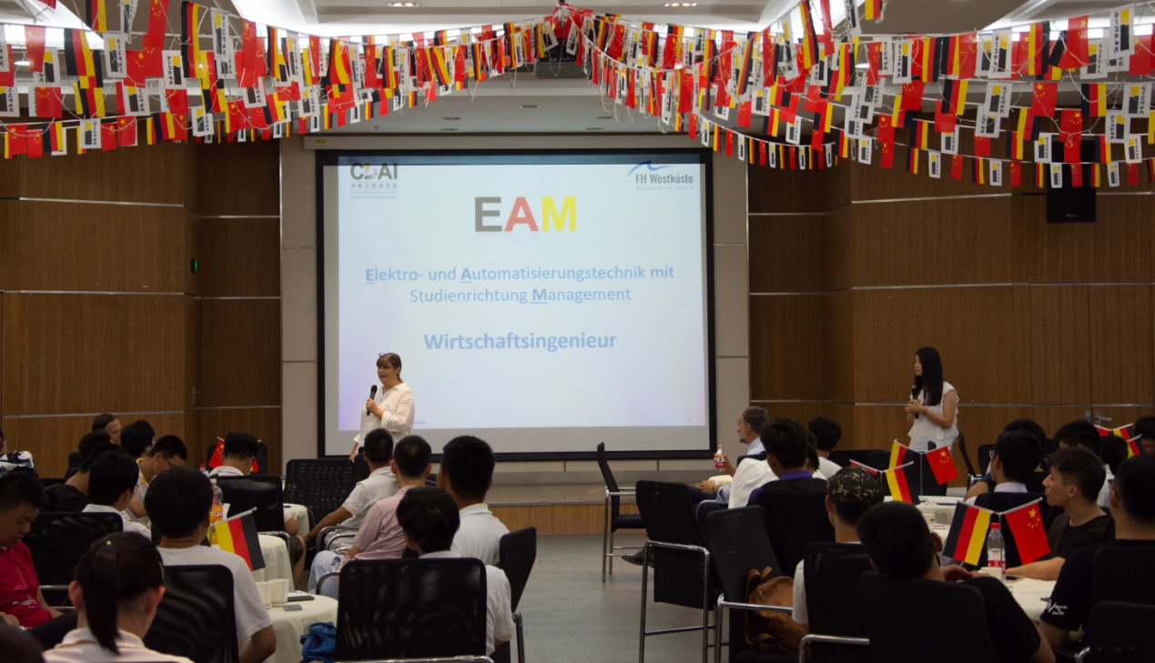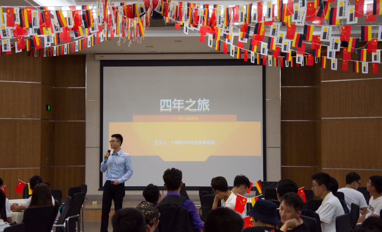 9月19日,公司留徳学习分享会在中德楼B4报告厅顺利召开。分享会的第一部分由德国留学归来的14级陈铭炀(电气)与谢颢(土木)两位同学带来,两位同学从亲身经历出发,带来了中德文化、学习方式和专业上的介绍。在分享会的第二部分,公司教学经理Frank Kemper教授、土木专业德方负责人Matthias Grottker教授介绍了公司的优势以及就土木专业而言未来可能需要面对的挑战,强调了德语学习的重要性;电气专业常驻教师Anja Schneider女士认为电气专业(管理方向)除了掌握本专业知识还要求具备一定的管理能力,是一门要求很高的专业,鼓励大家认真学习。在分享会的第三部分交流环节中,14级海外归来的学长学姐们热情地向在座的18级新生分享在德留学的经验和趣事,强调培养自身的独立意识与能力的重要性。经理徐理勤在最后总结中谈到,去德留学是一段难忘的经历,见过更大的世界才会更加从容的去面对未来,勉励大家把握大学时光,成长为具有国际视野的老员工。留徳学习分享会在欢快的气氛中圆满结束,通过此次高低年级的交流和德方教师们的分享,同学们对于未来的德国学习非常向往。