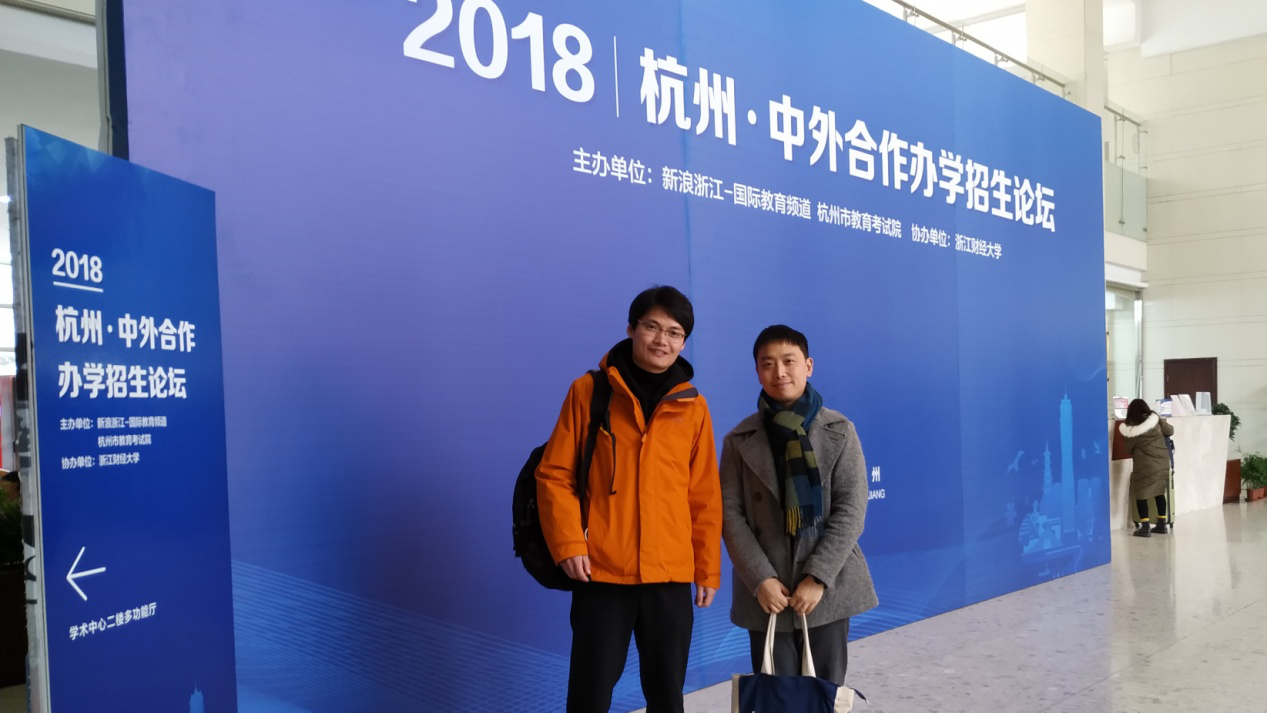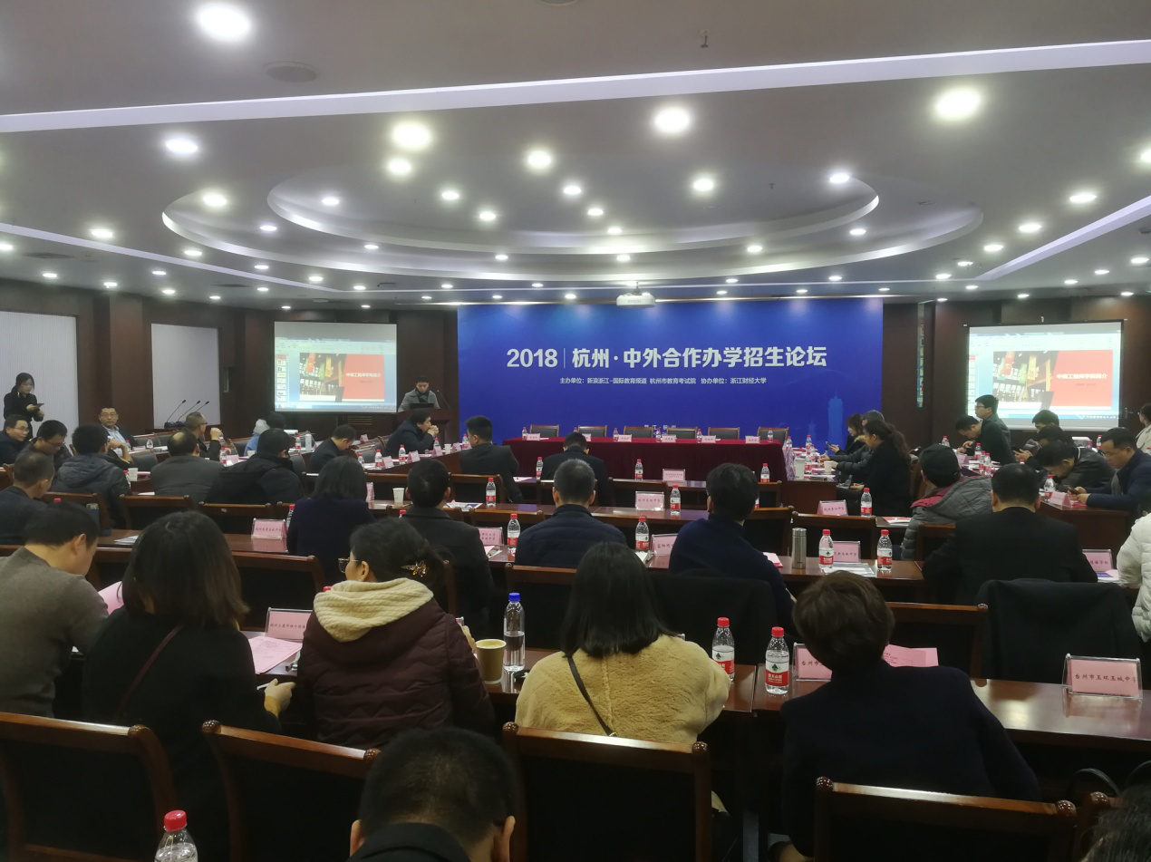 杭州市教育考试院和新浪浙江-国际教育频道于2018年12月21日在浙江财经大学共同主办“2018︱杭州·中外合作办学招生论坛”,论坛邀请了省内外知名高校中外合作办学机构及省内几十余所拥有国际化背景的高中。校招就处处长杨志祥、公司副书记李成炜及辅导员沈阳涛应邀参加了此次论坛。