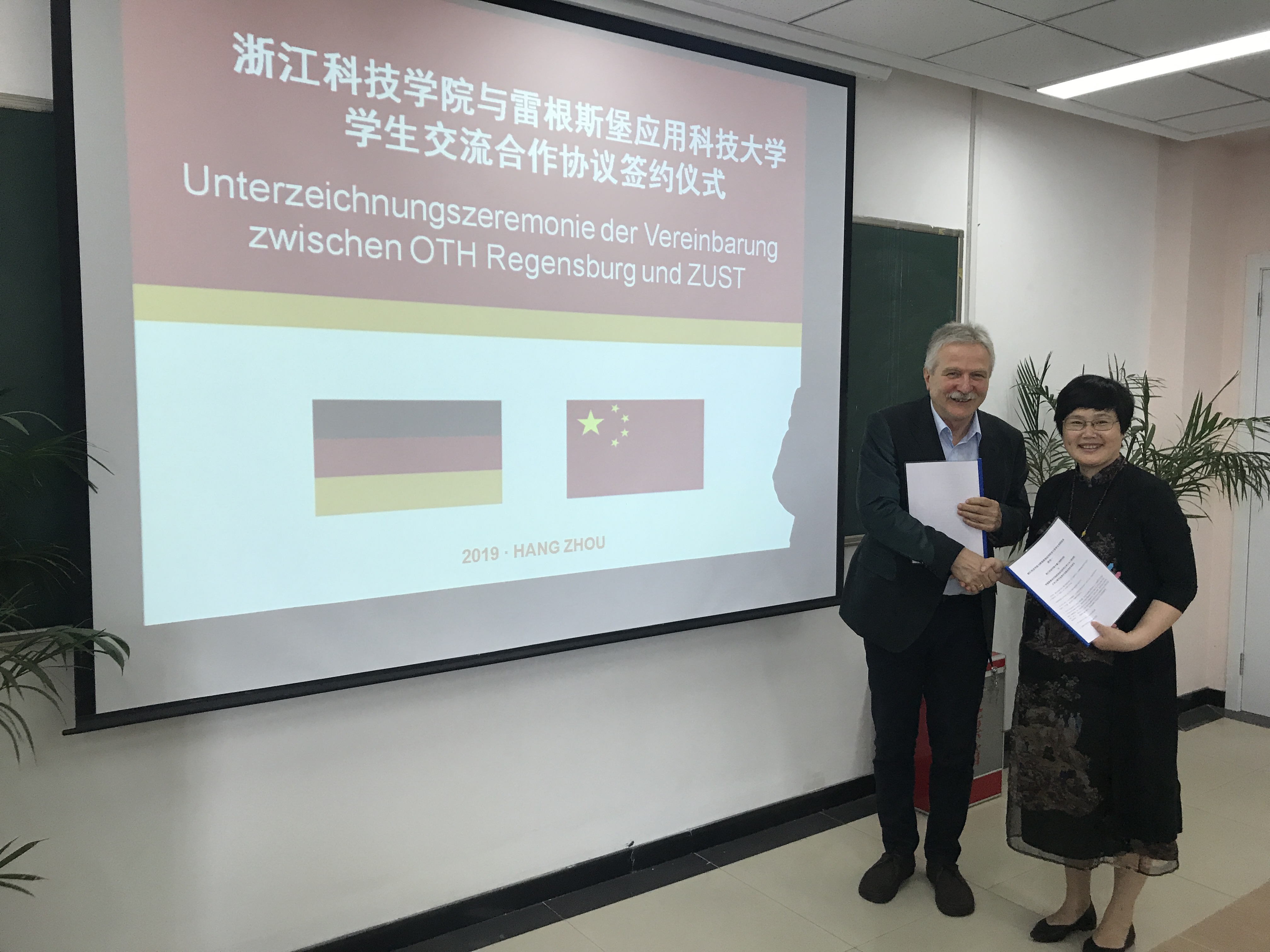 来访期间,克里斯蒂安·毛里亚教授和公司签署中德双方土木工程专业员工交流协议,并为16级土木专业员工开展出国选拔考试。访问期间,克里斯蒂安·毛里亚教授还参观了公司中德合作馆、中德友谊园以及安吉校区,对公司办学环境、中德合作发展历史有了更深入的了解。此外,克里斯蒂安·毛里亚教授还为公司17级土木工程专业员工作报告,详细介绍雷根斯堡应用科技大学学习和生活环境,土木工程专业设置等。
