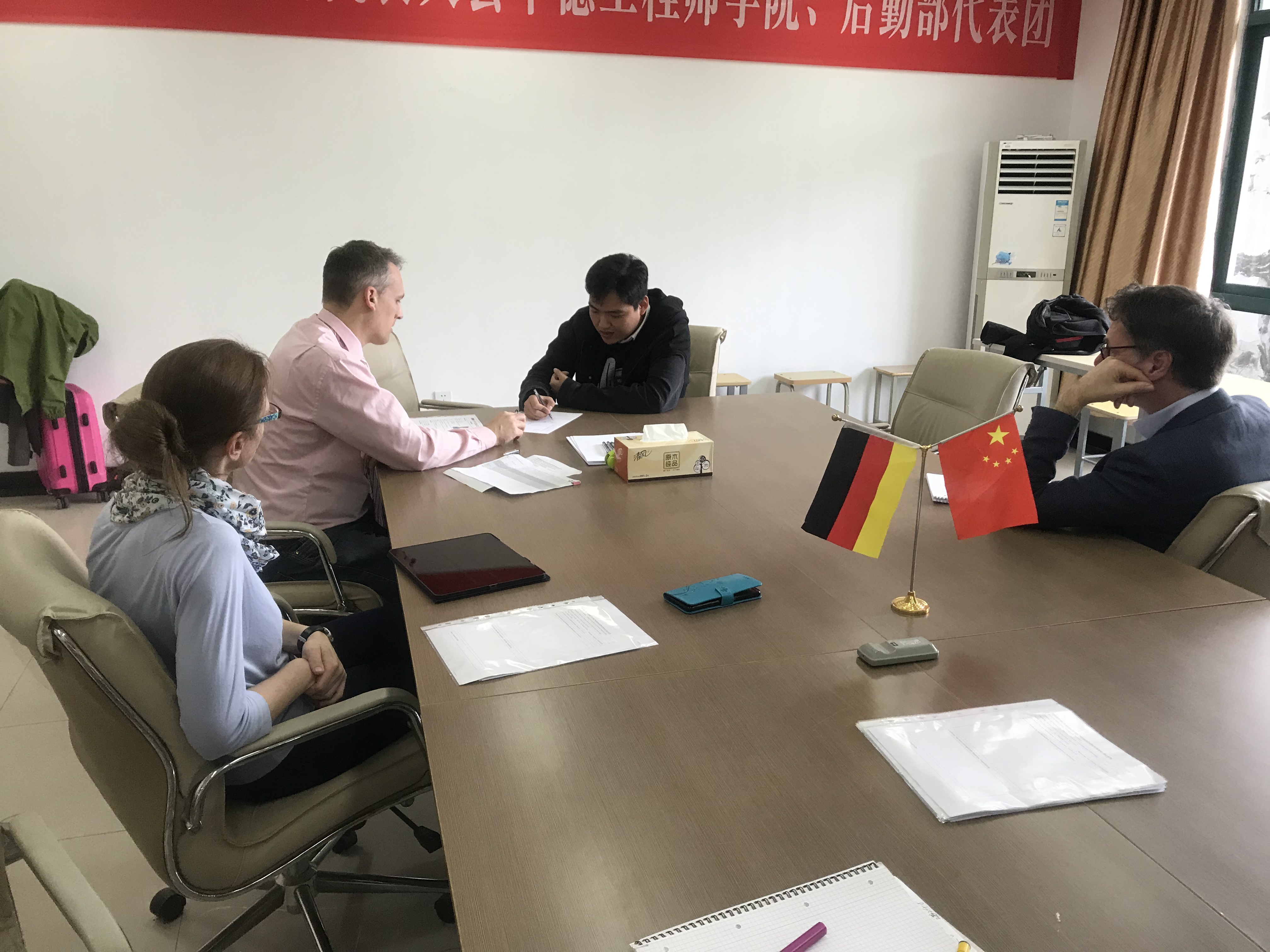 4月8日至13日,德国奥斯特伐利亚应用科技大学(Ostfalia Hochschule)结构力学教授比约恩·埃尔舍(Prof. Björn Elsche)、研究员娜迪娜·埃尔舍(Nadine Elsche)携5名土木工程专业员工前来公司进行为期六天的学习交流和访问,公司经理徐理勤女士、教学经理弗朗克·坎伯教授(Prof.Frank Kemper)、土木专业实验室工程师金韶霞和沈潇扬等接待了德方代表团一行。