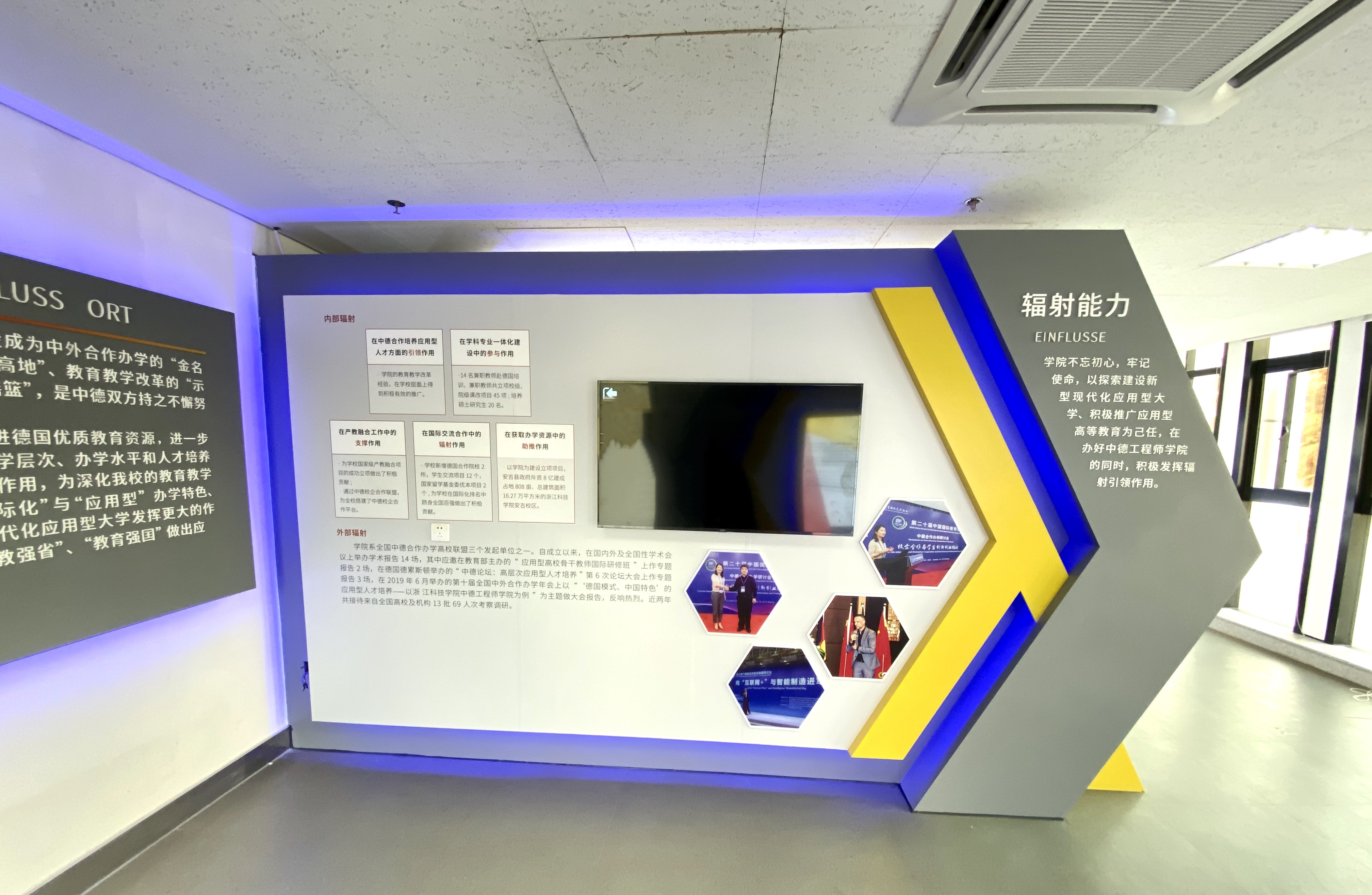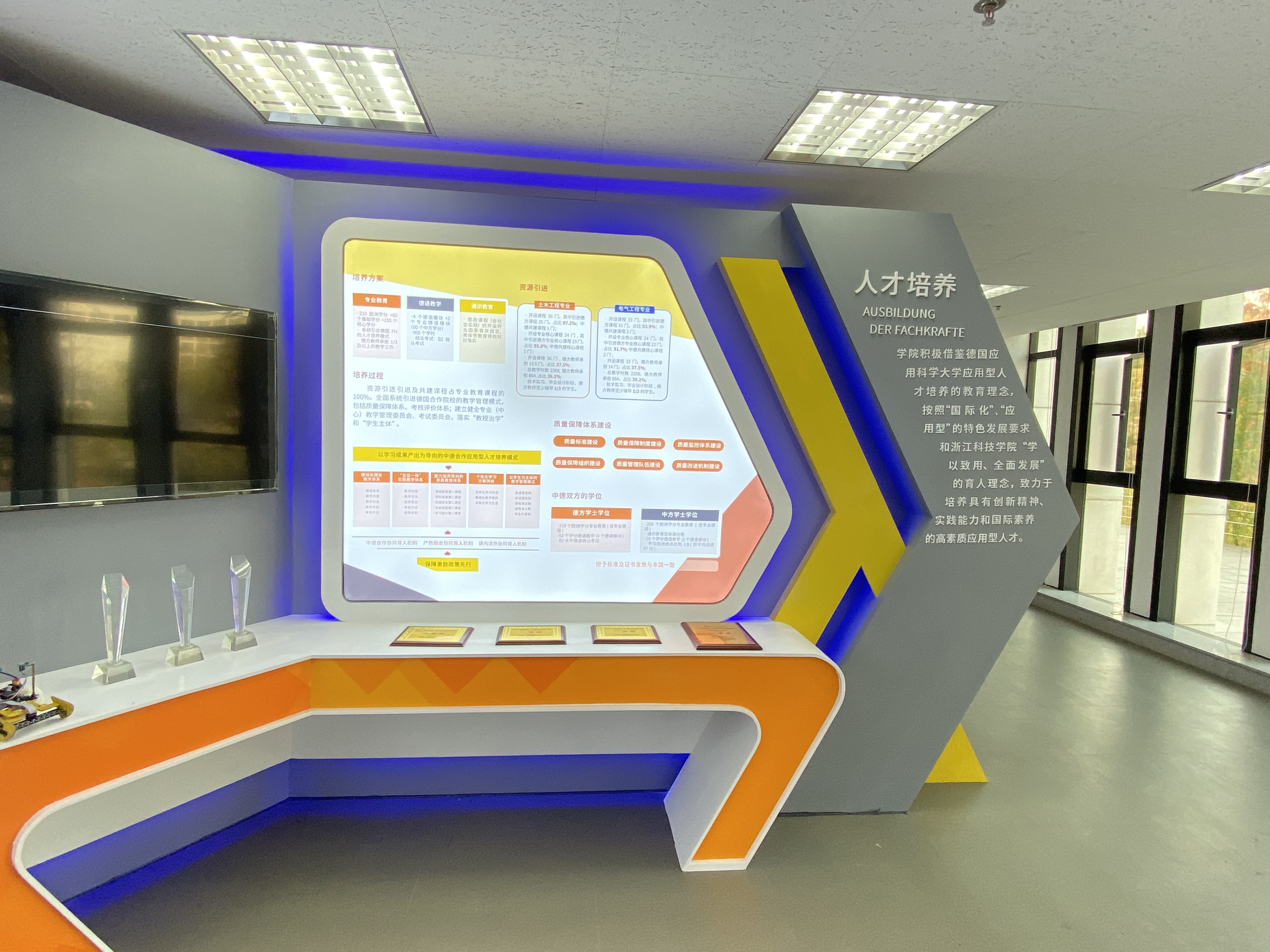 永利yl23411官网安吉校区为公司更名大学现场考察点之一。为响应公司冲刺更名大学工作总体部署,助力更名大学目标顺利实现,公司总结过去5年的办学历程和成效,专门设立办学成果布展项目,充分展示公司中德合作的办学经验和相关成果。经过2个多月的努力,项目顺利完工。11月21日,由校资产处组织,监察处、校办、计财处、工会(教代会)代表、永利yl23411官网等部门派员及供货单位代表,在安吉校区中德楼E座1层/D座1层现场进行项目进行现场验收。验收工作圆满完成。