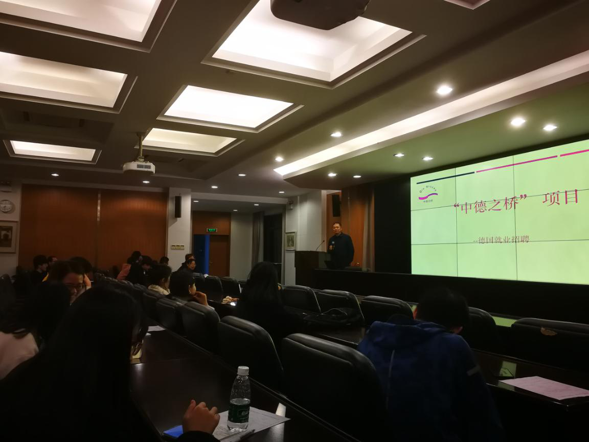 公司邀请了西安市雁塔区康桥外国语培训中心为我们毕业生介绍了“中德之桥”项目。该项目主要帮助国内毕业生顺利赴德国就业,包括戴姆勒、林德等知名企业。