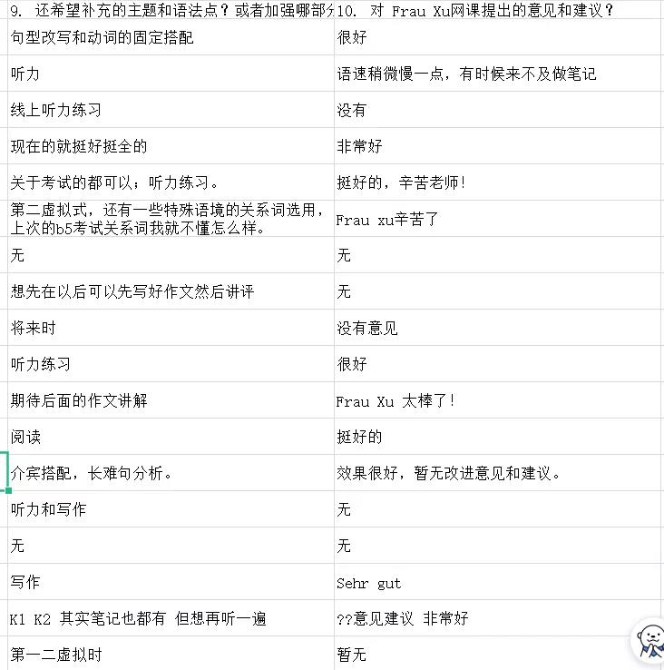 员工对德语在线教学的热情普遍较高,参与积极、按时打卡报到,大部分同学能做到不迟到不早退,有课程冲突及时向老师线上请假,并能够按时完成作业,在课上互动也较为顺利。