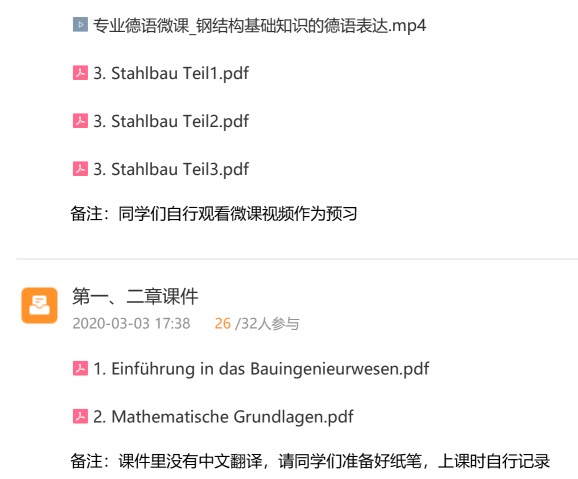 上课采用PPT与数位板结合进行课程内容的讲解,讲解时结合工程实例或建筑信息模型(BIM)相关软件进行专业内容的演示与德语表达练习。