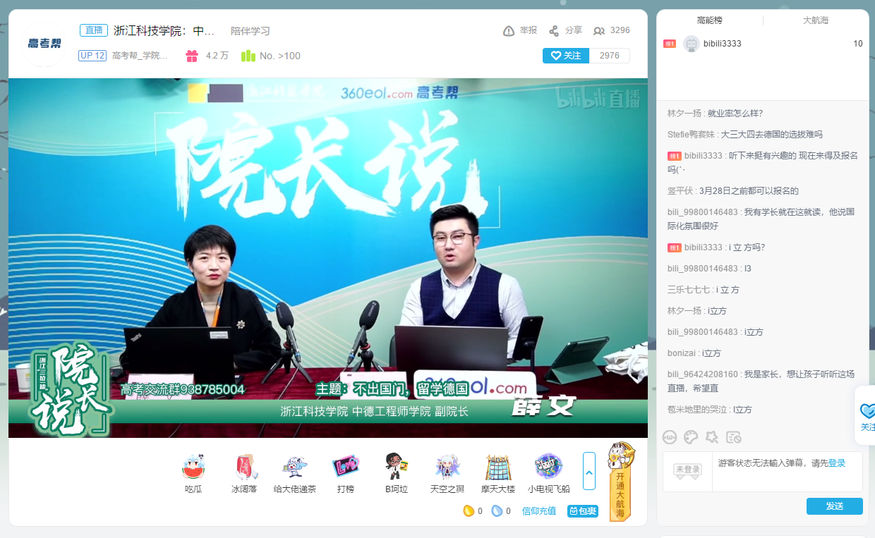 2021312日,公司与360教育在线高考帮合作开展三位一体招生宣传“经理说”直播活动,公司副经理薛文做了题为“不出国门,留学德国”的人才培养方案介绍,与主持人互动并详细解答了考生比较关注的关于公司的一些问题,吸引了众多考生家长驻足观看。