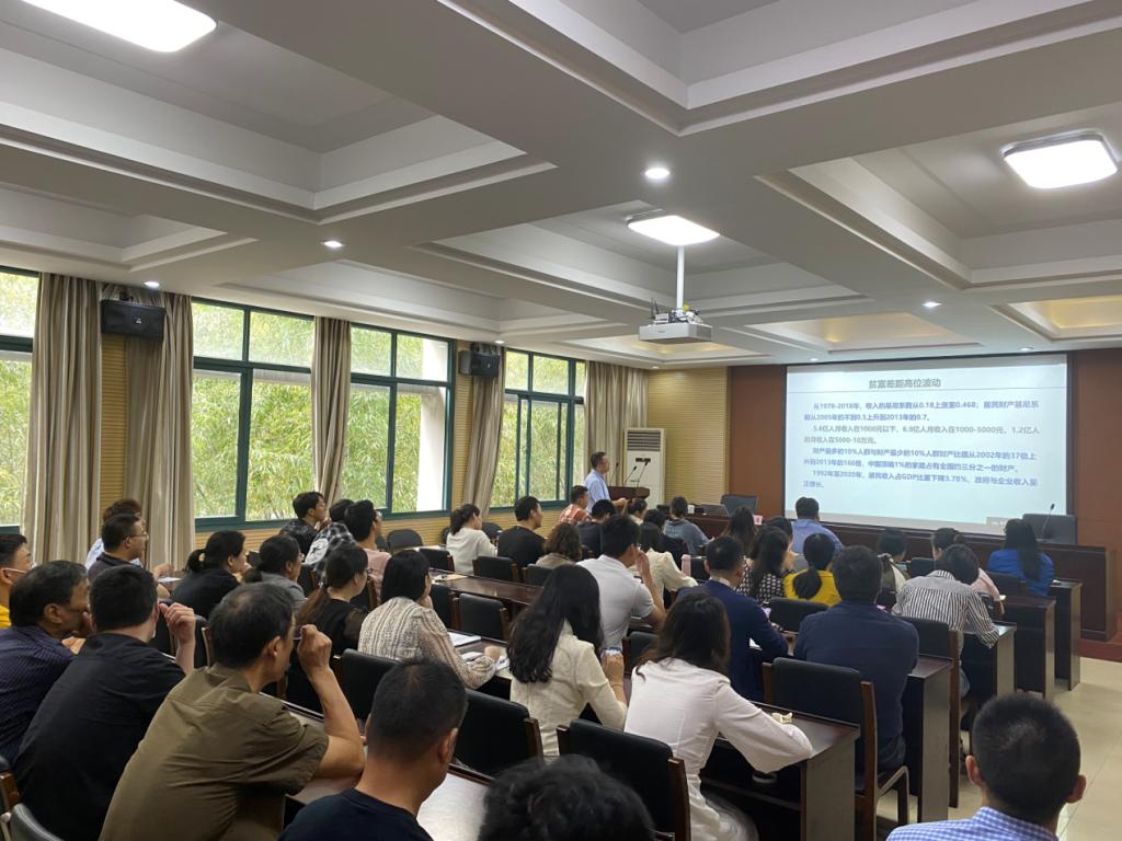 宣讲中,金通教授从共同富裕的基本背景、核心内涵和实现路径三个方面展开。他首先指出共同富裕是社会主题本质,但内需不足、社会阶层分化等造成了贫富差距近些年一直处于高位波动,在此背景下提出共同富裕具有重大意义。他强调共同富裕是全民共富、全面富裕、共建共富和逐步富裕,并从社会公平、产业发展、创新体系、财政税收等方面对共同富裕的实现路径进行了探讨。金通教授认为高校师生应勤于思考,加强科技创新,助力共同富裕。
