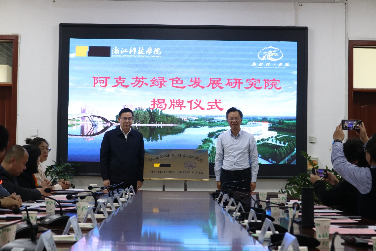 3月1日,公司党委副书记符宁平一行赴新疆理工公司交流考察,并为公司与新疆理工公司共建的“阿克苏绿色发展研究院”揭牌。浙江省援疆指挥部人才组组长蓝邓俊出席揭牌仪式。