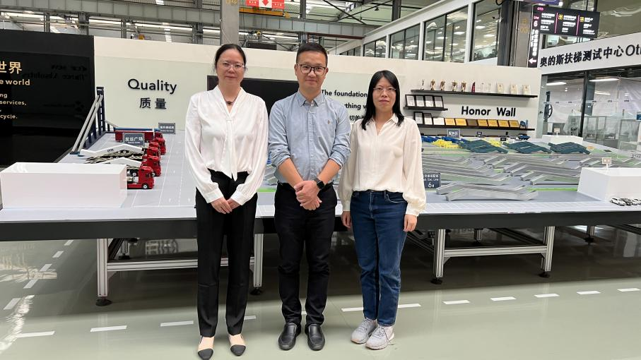 马杭育详细介绍了企业发展史以及数字化技术全方位赋能企业的成果和成效,陪同参观了奥的斯嘉兴生产基地。范佳静介绍了公司中德合作办学下工业工程专业特色,吕海萍介绍了经管工业工程专业近10年的发展以及新文科专业认证情况,两个公司工业工程专业虽各有特色,但一直保持着优势互补、紧密合作关系,特别是在课程设置、人才培养模式与企业的紧密贴合上。随后双方围绕校企协同培养符合产业、行业、企业用人需求的工业工程专业人才等问题展开深入探讨,就企业参与人才培养全过程方式,如参与人才培养方案制定、始业教育、课堂教学、实践教学、学科竞赛等可能性达成一定的共识,为未来更广阔校企深入合作打下基础,同时也更好地促进了两个公司工业工程专业的协同发展。