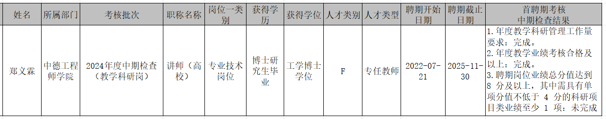 应人事处《关于开展2021年度引进人才首聘期考核及2022年度引进人才工作业绩检查的通知 》的工作部署,根据公司《引进人才首聘期考核实施办法(修订)》(浙科院人〔2019〕11号)和《关于印发高层次人才引进与管理办法的通知(浙科院人〔2022〕5号)》文件精神,以及新引进人员《高层次人才人事聘用协议》约定,永利yl23411官网于2024112022年度引进人才郑义霖进行首聘期中期工作业绩检查。经公司党总支和党政联席会审核,现将其检查结果公示如下: