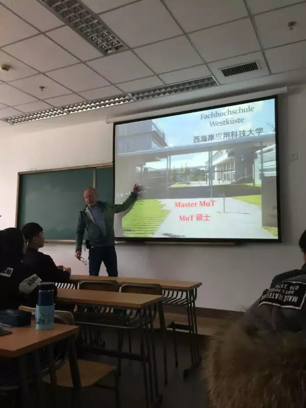 2017年2月24日12:40,中德工程师16级电气工程及其自动化专业的同学有幸迎来了西海岸应用科技大学的Pro. Dr. Detlef Jensen。他为同学们进一步地介绍了德方院校的专业领域、主持项目以及德方员工的学习方法,使同学们对FHW有了更深入的了解。