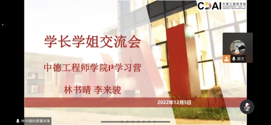 活动从下午五点钟开始,以线上视频会议的形式进行。首先,公司经理薛文老师热情地向同学们介绍了林书晴学姐和李来骏学长,两位学长学姐目前在德国TU9之一的汉诺威大学攻读硕士学位。随后,薛文老师向同学们阐述了公司有关于留学德国的多种可供选择的项目和它们的大致规则。之后,以大家发言的形式进行提问,由两位学长学姐来解答大家的疑问,整个问答环节主要围绕德国的学业情况、生活环境、德国读研、安全保障、各项费用等展开。一个半小时的会议时光如白驹过隙,言语之间,为大家勾勒出了一幅美好的留德学习畅想图。