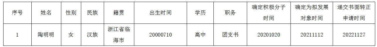 (结束)关于陶明明同志预备党员转正情况的公示单