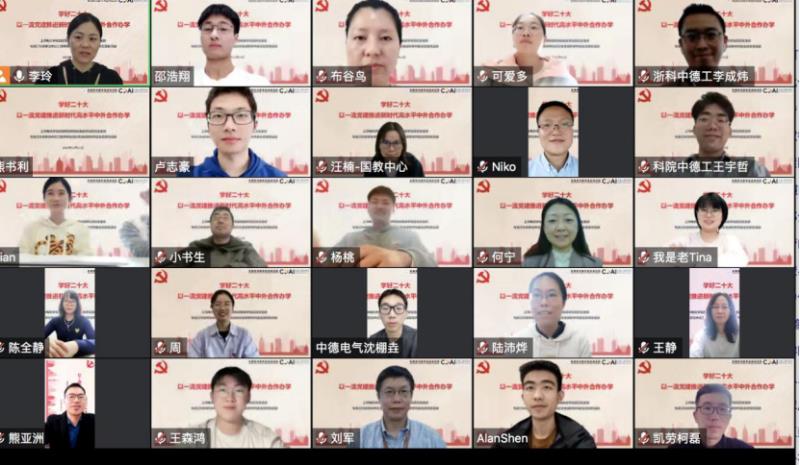 会上,双方举行了“党建共同体”协议书的线上签约仪式。根据协议,双方将在理论学习、组织建设、活动开展等方面进一步深入合作,实现组织共建、发展共促、资源共享。随后,中德工程师范佳静书记与凯撒斯劳滕智能制造公司何宁书记以党的二十大精神为指导,分别围绕“以铸魂育人为使命、持续提升育人能力”和“构建新时代高质量中外合作办学党建工作体系”开展二十大精神主题领学。双方党员教师还就党建与中心工作相结合、员工党员发展、海外员工思想引领等方面展开交流。
