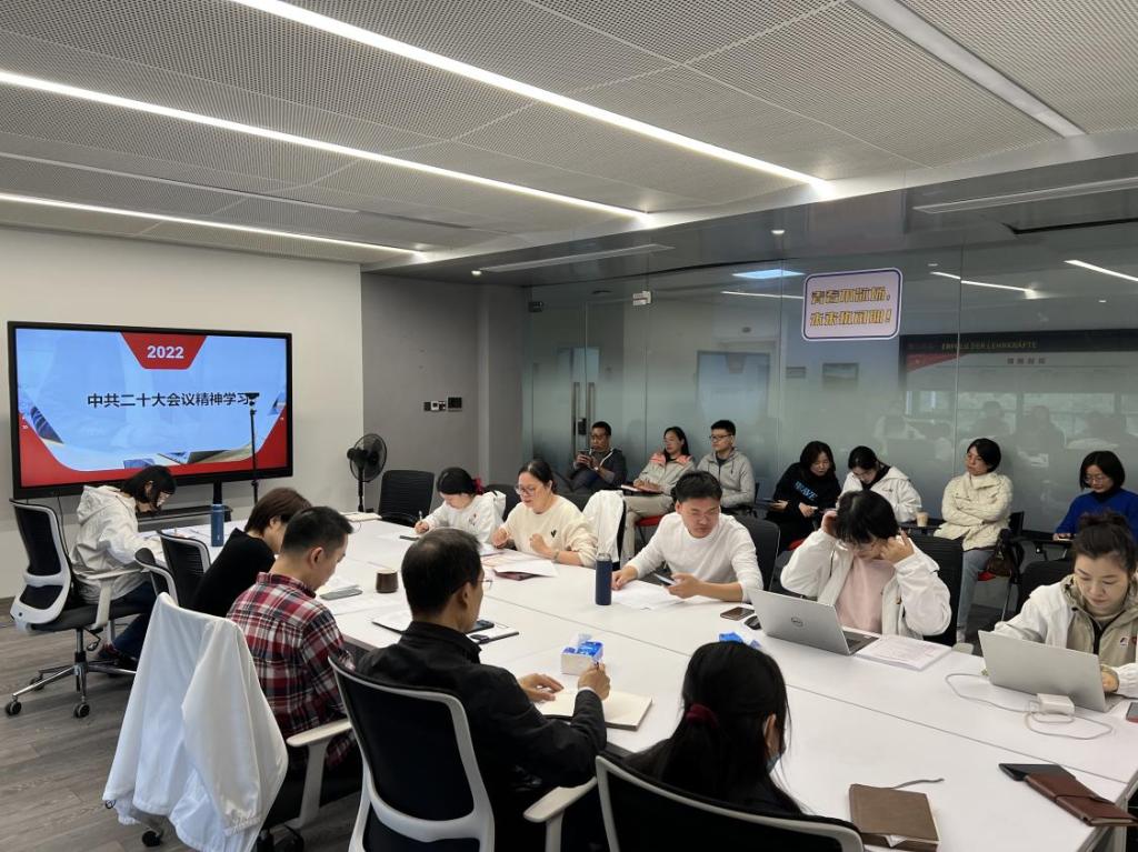 会上院直属党支部书记范佳静老师对党的二十大报告进行了领学。党的二十大报告主要分三大部分内容,第一部分为回顾总结了过去5年的工作和新时代10年的伟大变革;第二部分明确提出了新时代新征程中国共产党的使命任务;第三部分为全面建设社会主义现代化国家的具体举措。本次报告第一次单独成章对教育、科技、人才工作进行一体部署,提出了教育、科技、人才是全面建设社会主义现代化国家的基础性、战略性支撑。范佳静老师强调作为高校教师,一定要全面领会党的二十大精神,以铸魂育人为使命,做好员工的引路人。