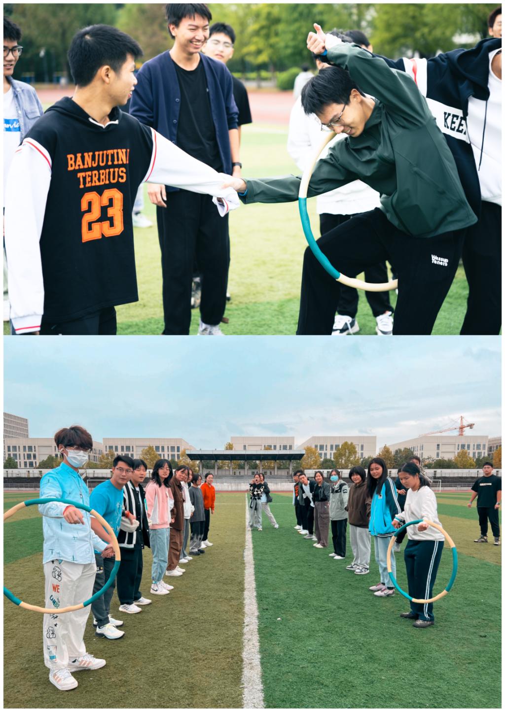 相比传统运动赛事,趣味运动会内容更加丰富,形式也更加新颖。项目包含劈叉接力、袋鼠跳接力、一圈到底、公鸡下蛋、巨人脚步、指压板跳绳、无敌风火轮等,兼具趣味性与运动性。同学们齐心协力、互帮互助、配合默契,大家玩得不亦乐乎,同时以班级为单位组队参赛很好地展现了团结协作精神。薛文经理赛后表示,体育运动促进人体分泌多巴胺、内啡肽等“快乐因子”,能够让人产生愉悦的情绪反应。她鼓励同学们在学业之余积极参与到课外体育锻炼中来,期待与同学们一起快乐运动,健康生活。