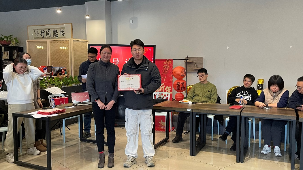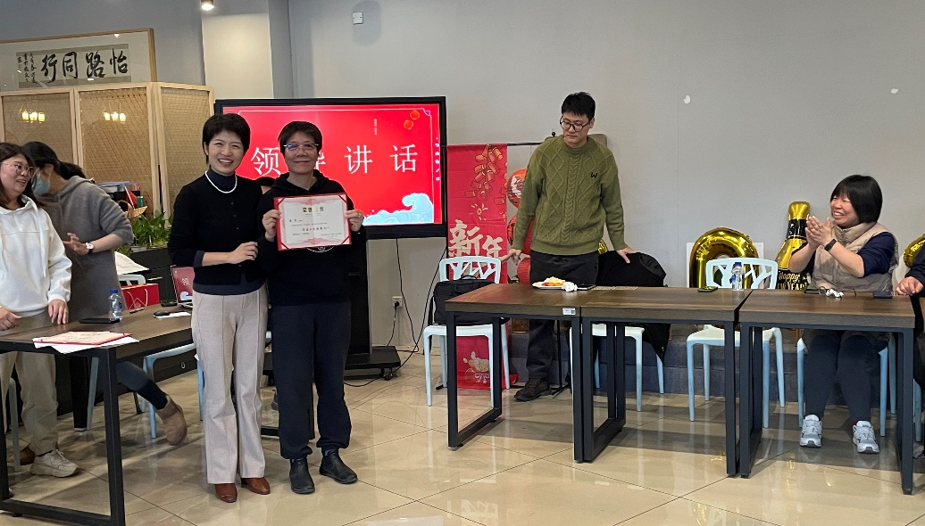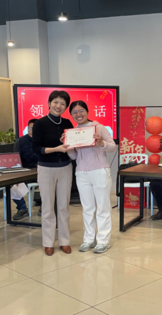 活动伊始,公司经理薛文老师发表了热情洋溢的新年致辞,对全体教职工们的辛勤付出表示衷心感谢,激励大家继续携手共进,并和范佳静书记为所有获得优秀工作个人称号的老师们颁发荣誉证书。