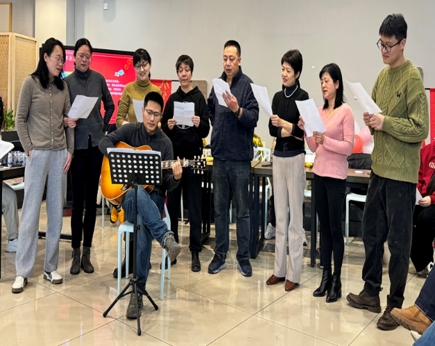 随后,活动进入欢乐的游戏和文艺表演环节。教职工们积极投入互动游戏,通过团队协作完成各种有趣的挑战,赢得了精美的小礼品。表演环节中老师们精彩的合唱歌曲表演更是将现场气氛推向高潮。